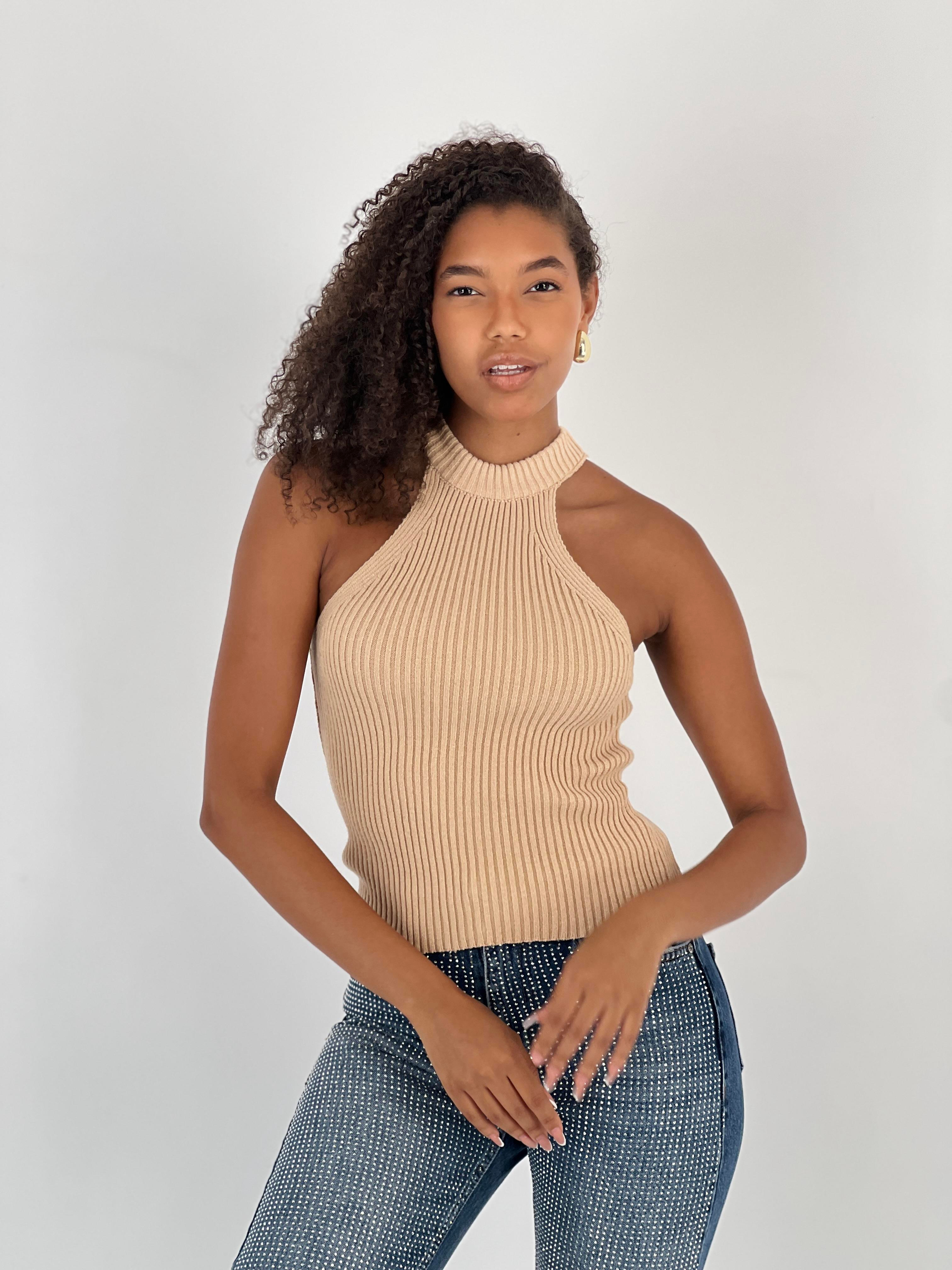 Modern ve sofistike bir stil için tasarlanan bu boğazlı yaka kolsuz fitilli crop triko bluz, hem şık hem de rahat bir seçenektir. Vücudu nazikçe saran fitilli dokusu ve kısa kesimiyle dinamik bir görünüm yaratır. Yüksek oranda viskon içeren yumuşak kumaşı, gün boyu konfor sunarken, boğazlı yaka detayı elbiseye zarif bir hava katar. Ceketlerin, hırkaların veya gömleklerin içine giyerek katmanlı kombinler oluşturabilirsiniz.