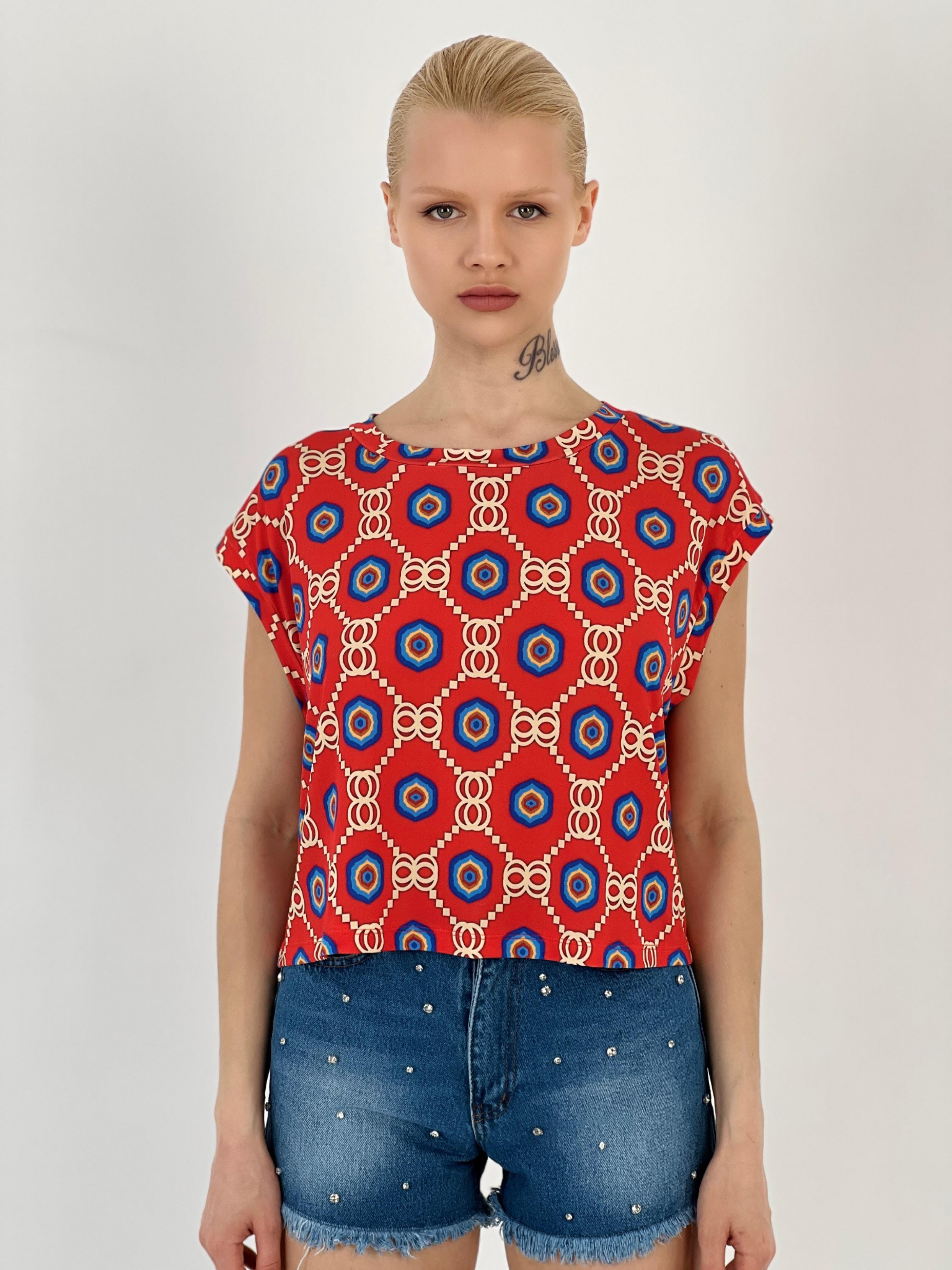 Kadın Desenli Kırmızı Tişört (15450-04)