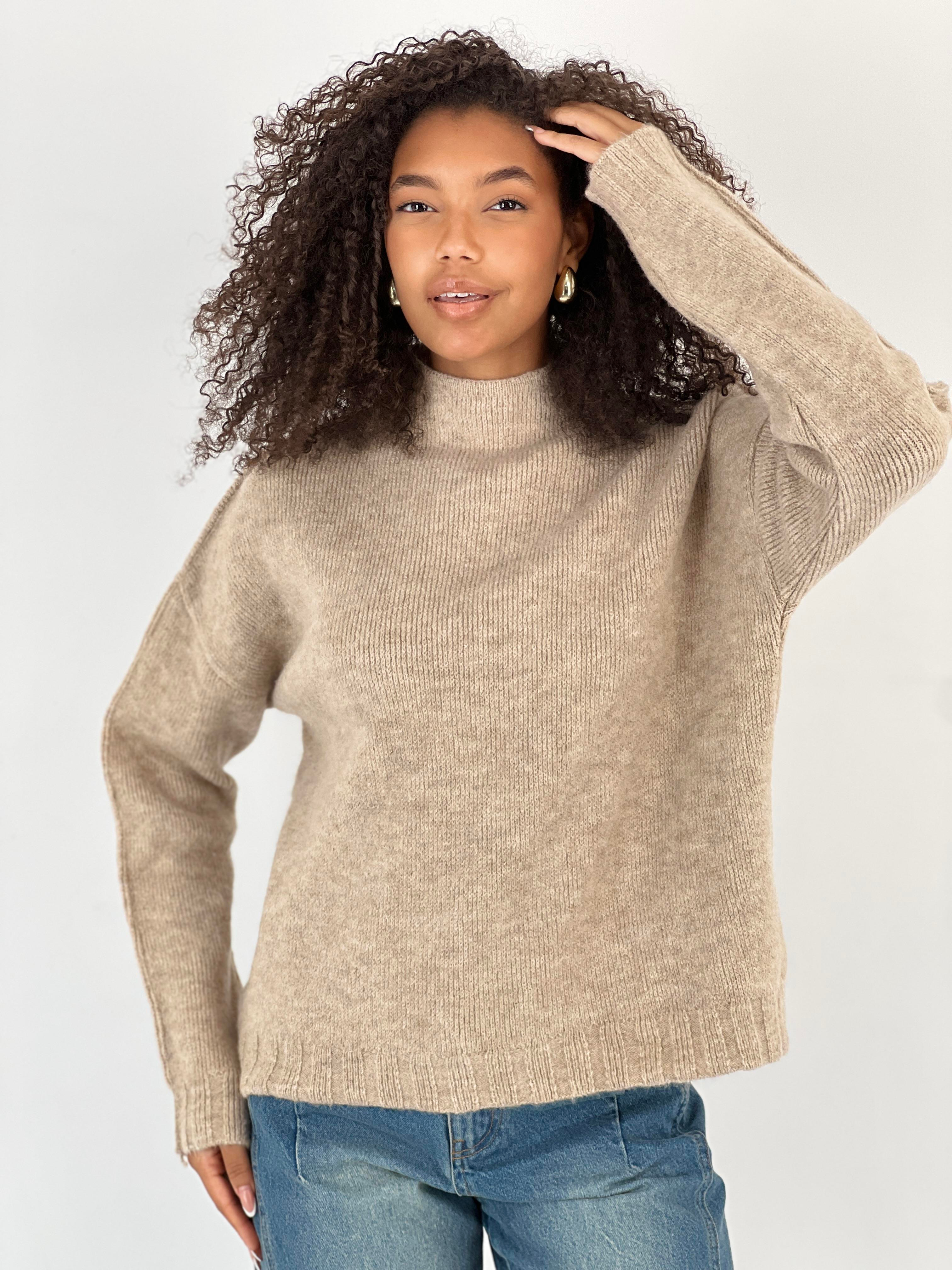 Rahatlık ve zarafeti bir araya getiren bu dökümlü yarım balıkçı yaka kazak, gardırobunuzun en şık parçalarından biri olacak. Akrilik ve polyester karışımından oluşan yumuşak kumaşı, dökümlü kesimiyle vücudunuzda akışkan ve zarif bir duruş sergiler. Yarım balıkçı yaka detayı, kış aylarında sıcak tutarken, boynunuzu sıkmadan modern bir stil sunar.