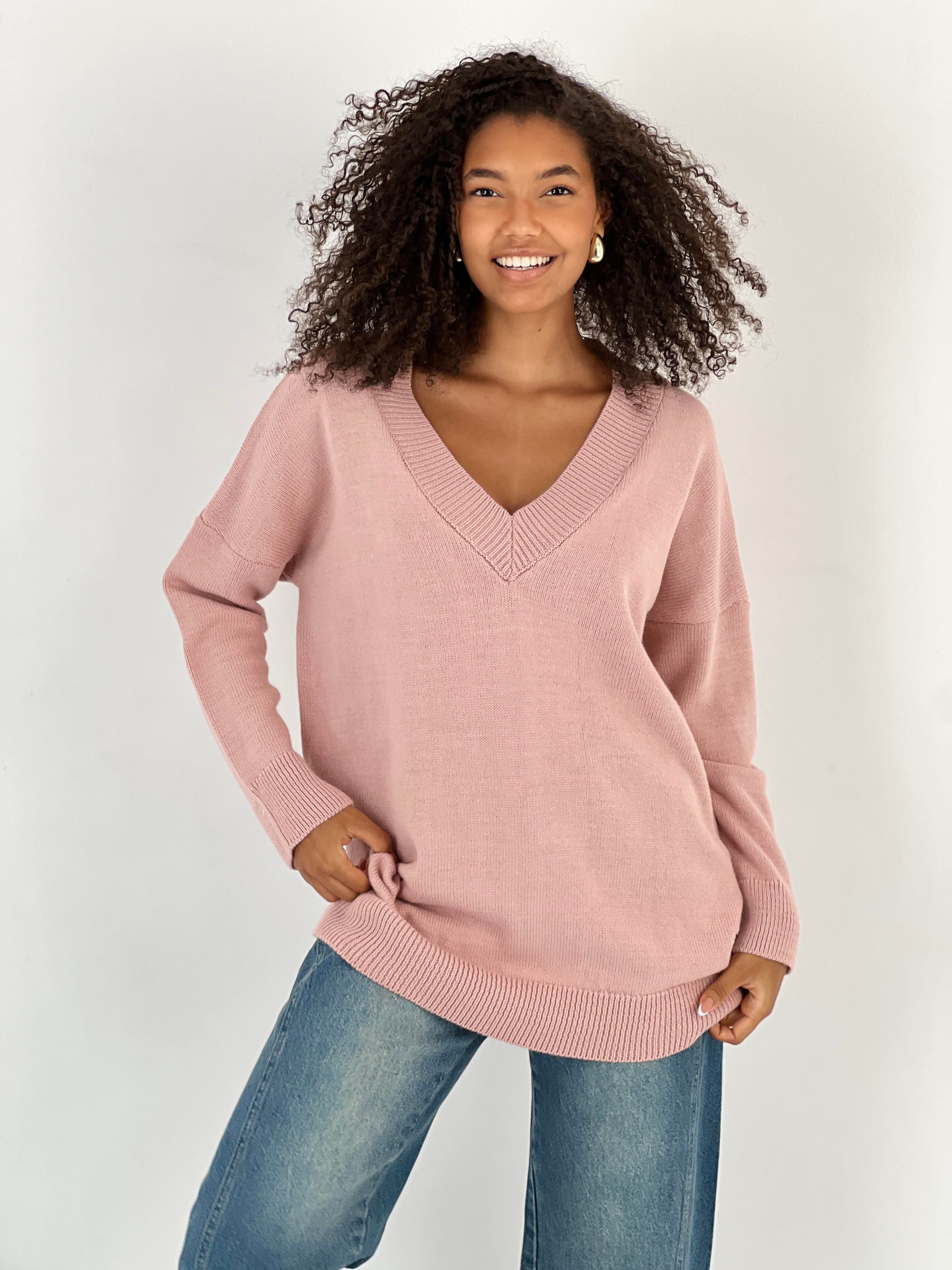 Rahat ve şık bir görünümün vazgeçilmezi olan bu oversize V yaka triko kazak, gardırobunuzun en konforlu ve çok yönlü parçası olacak. Salaş kesimiyle modern bir duruş sergilerken, V yaka detayı elbiseye zarif bir hava katar. Yumuşacık kumaşıyla sıcak ve keyifli bir kullanım sunar. Dar kesim alt giyimlerle harika bir denge oluşturarak zahmetsiz bir şıklık yakalamanızı sağlar.