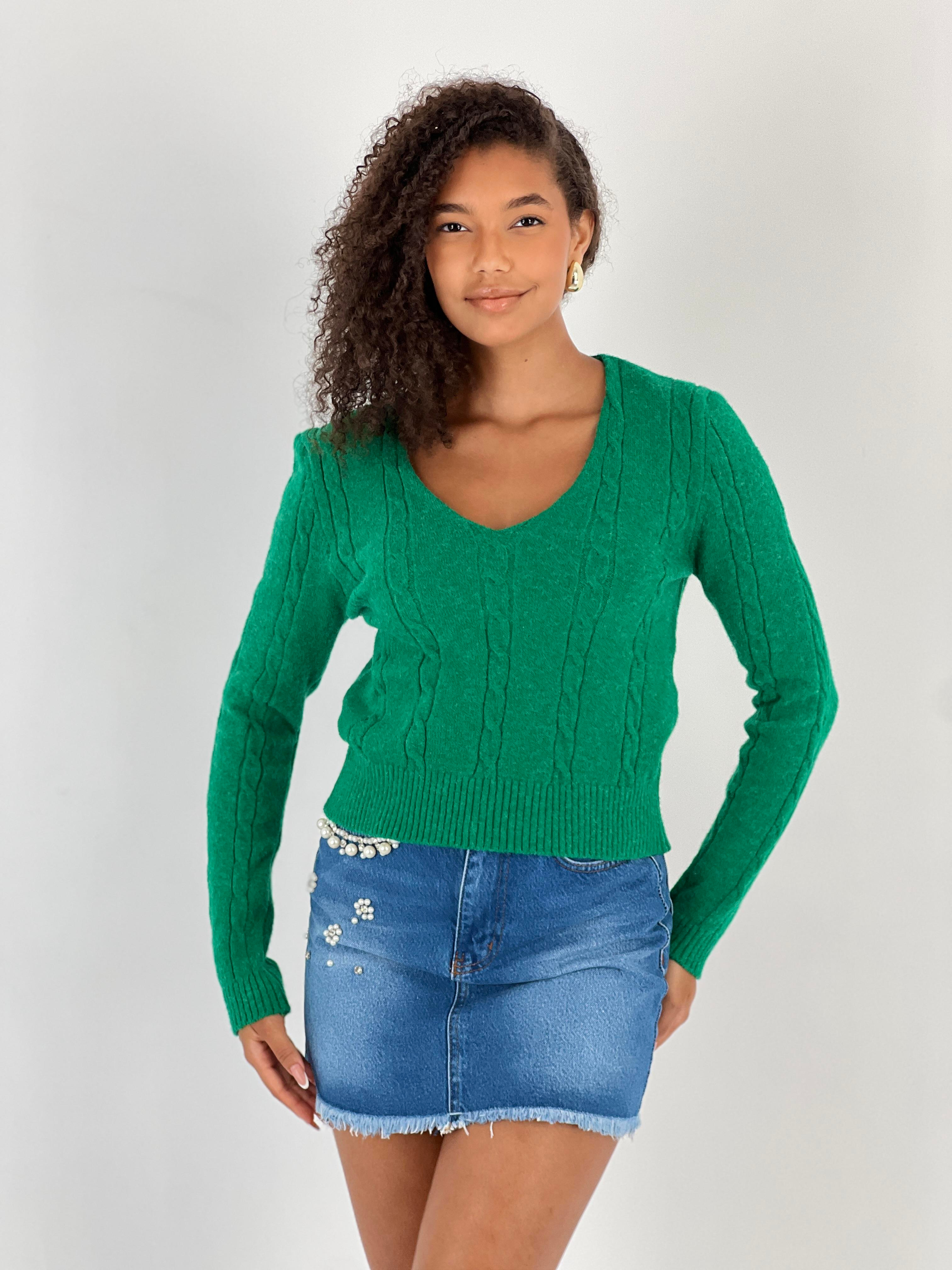 Modern ve feminen bir dokunuş arayanlar için V yaka saç örgü kısa triko kazak ideal bir parçadır. Yumuşak dokusu ve belirgin saç örgü deseniyle hem sıcak tutar hem de şık bir stil sunar. Yüksek bel alt giyimlerle mükemmel uyum sağlayarak dinamik bir görünüm yaratır.