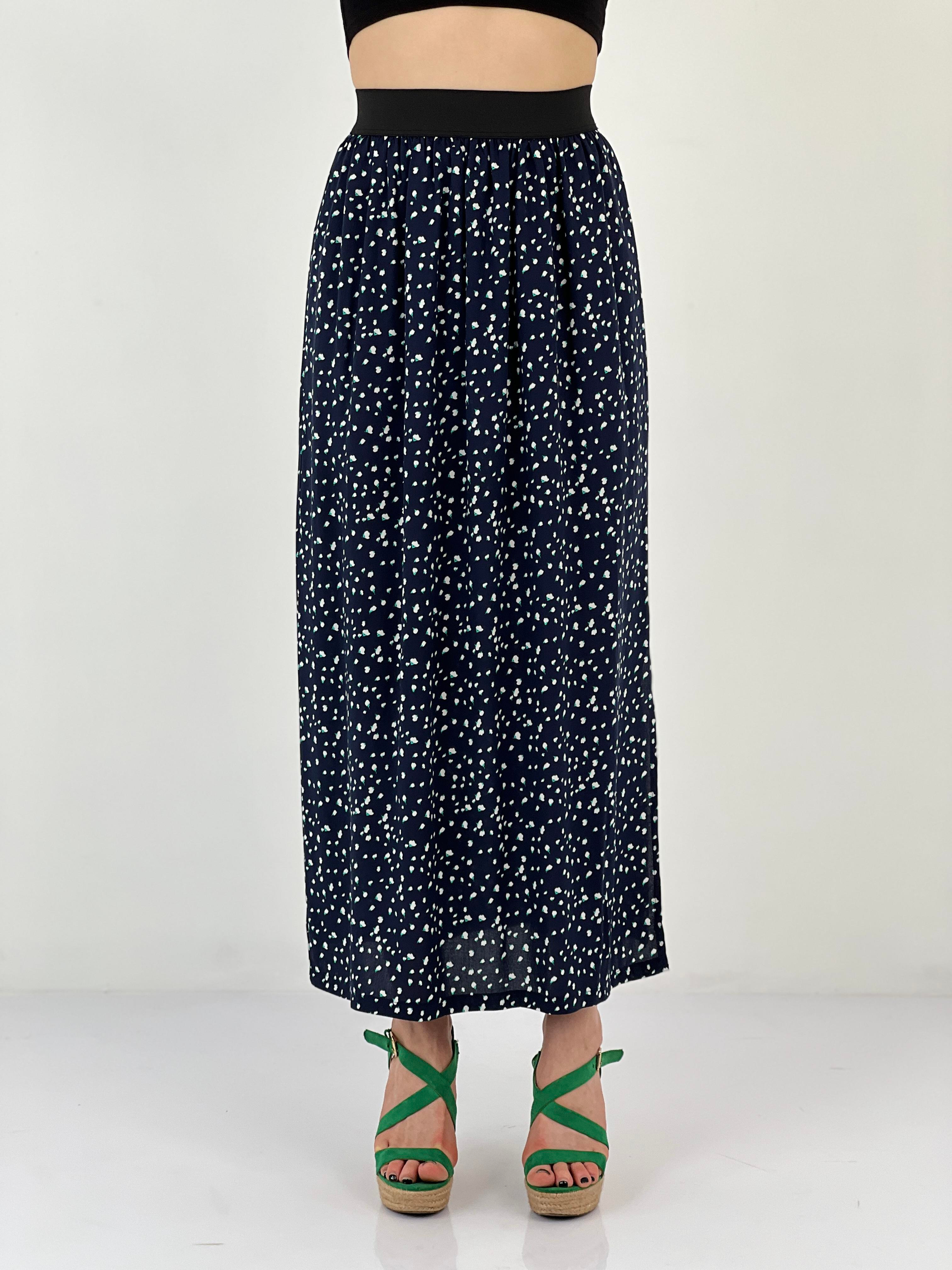 Kadın Yan Yırtmaçlı Desenli Lacivert Etek (80429-32)